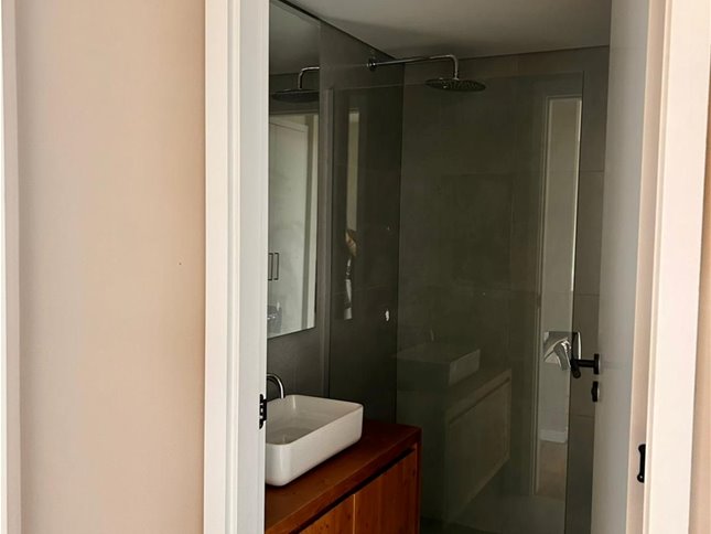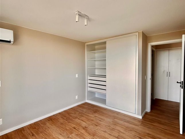 Cuenta con 1 dormitorio con placard y salida a la terraza, 1 baño completo, aire acondicionado en living y dormitorio, losa radiante a gas, y cochera fija para un auto.